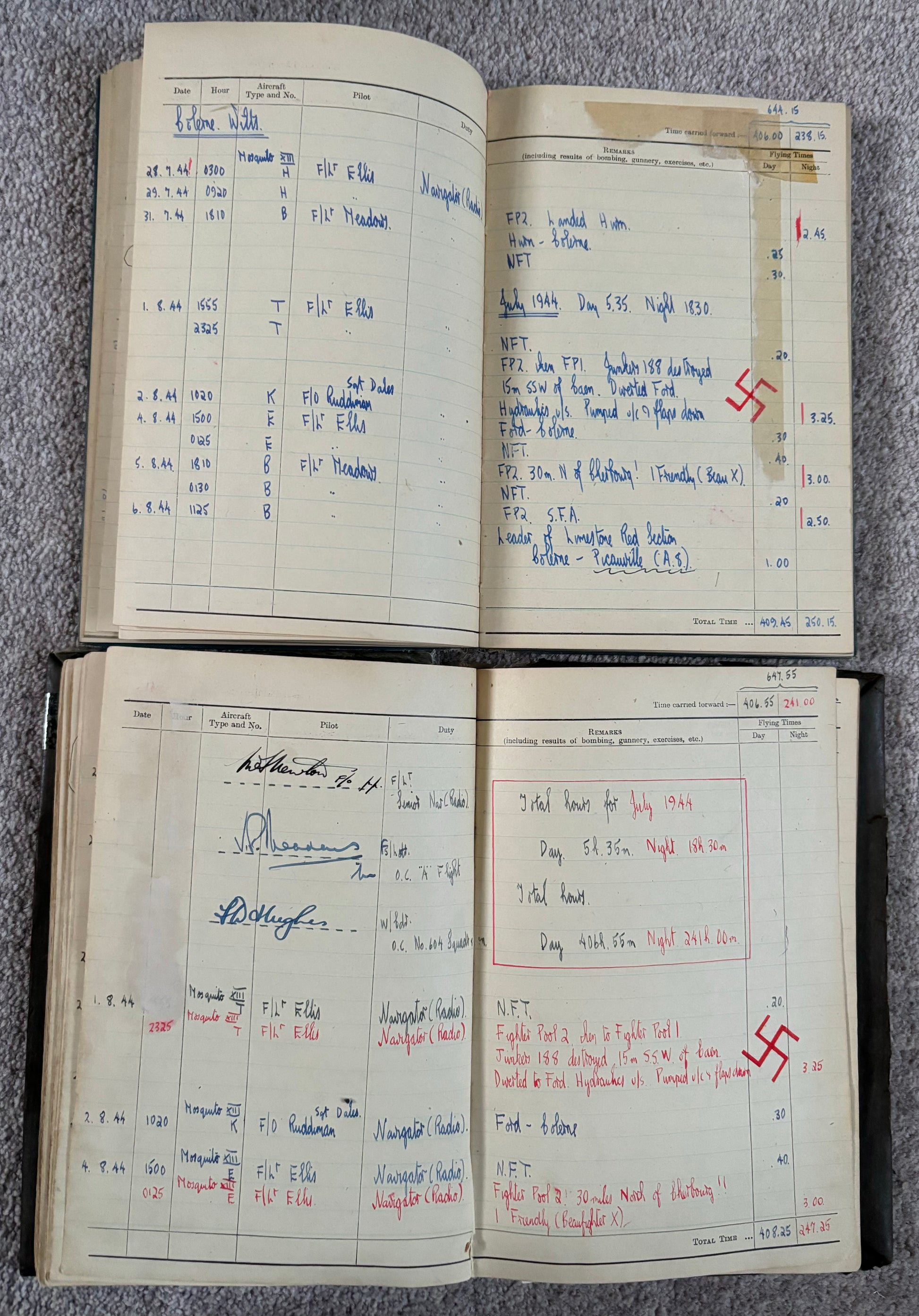 SOLD! Incredibly Special Logbook Set to a Mosquito Night Fighter, 604 Squadron, 2 Confirmed Kills, D-Day, Battle of the Bulge, First Night Fighter Squadron into Normandy