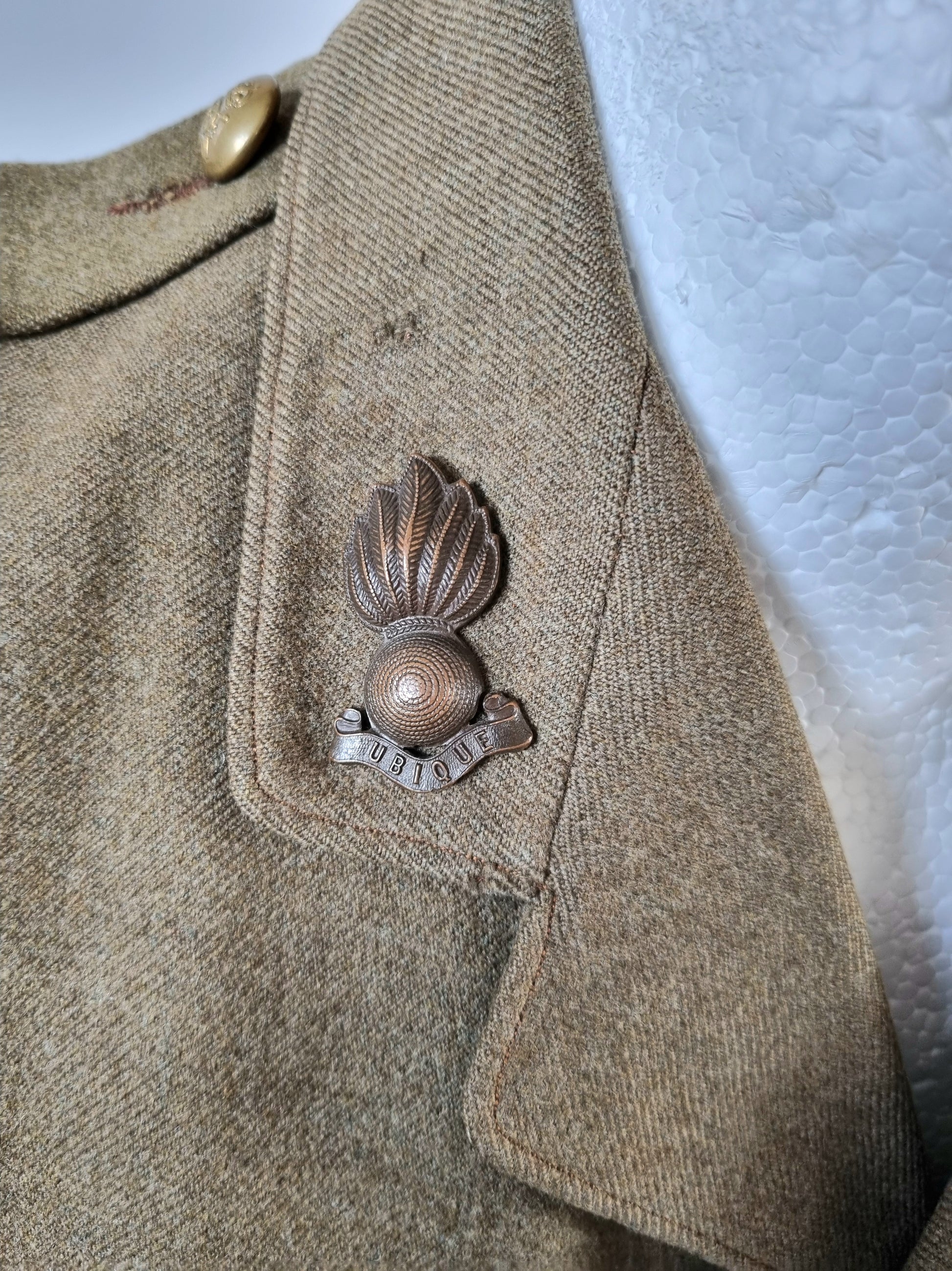 With dark brass Royal Artillery collar badges and metal Royal Field Artillery shoulder titles.