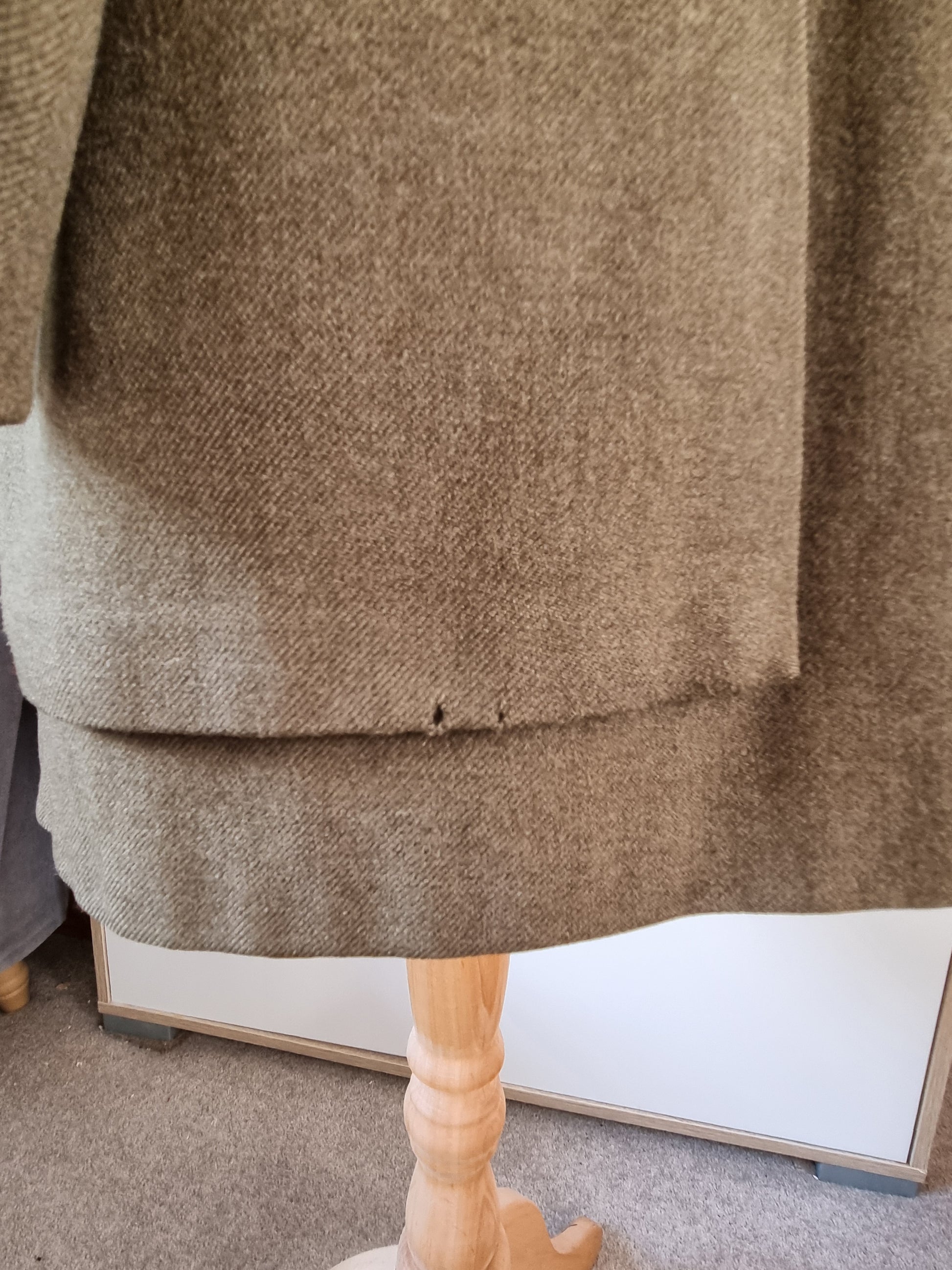 Condition is generally very good - a patch of moth holes at the side/back and some small holes elsewhere - pictured. The lining is torn in a few places.