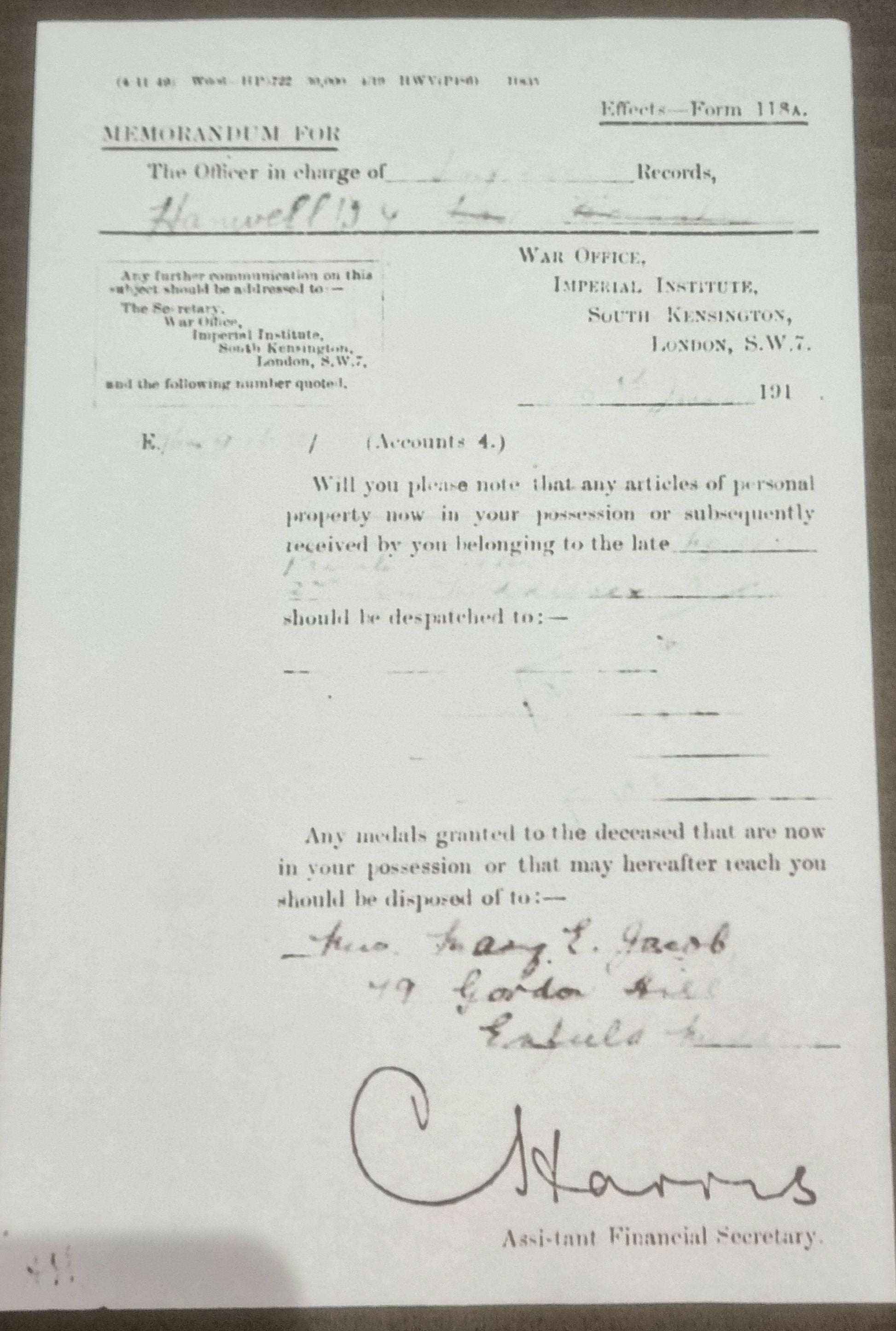 His parents were Wlilliam Alfred and Mary Elizabeth Jacob, living in Enfield Middlesex at the time of his death. He was single and with no children at the time of his death.