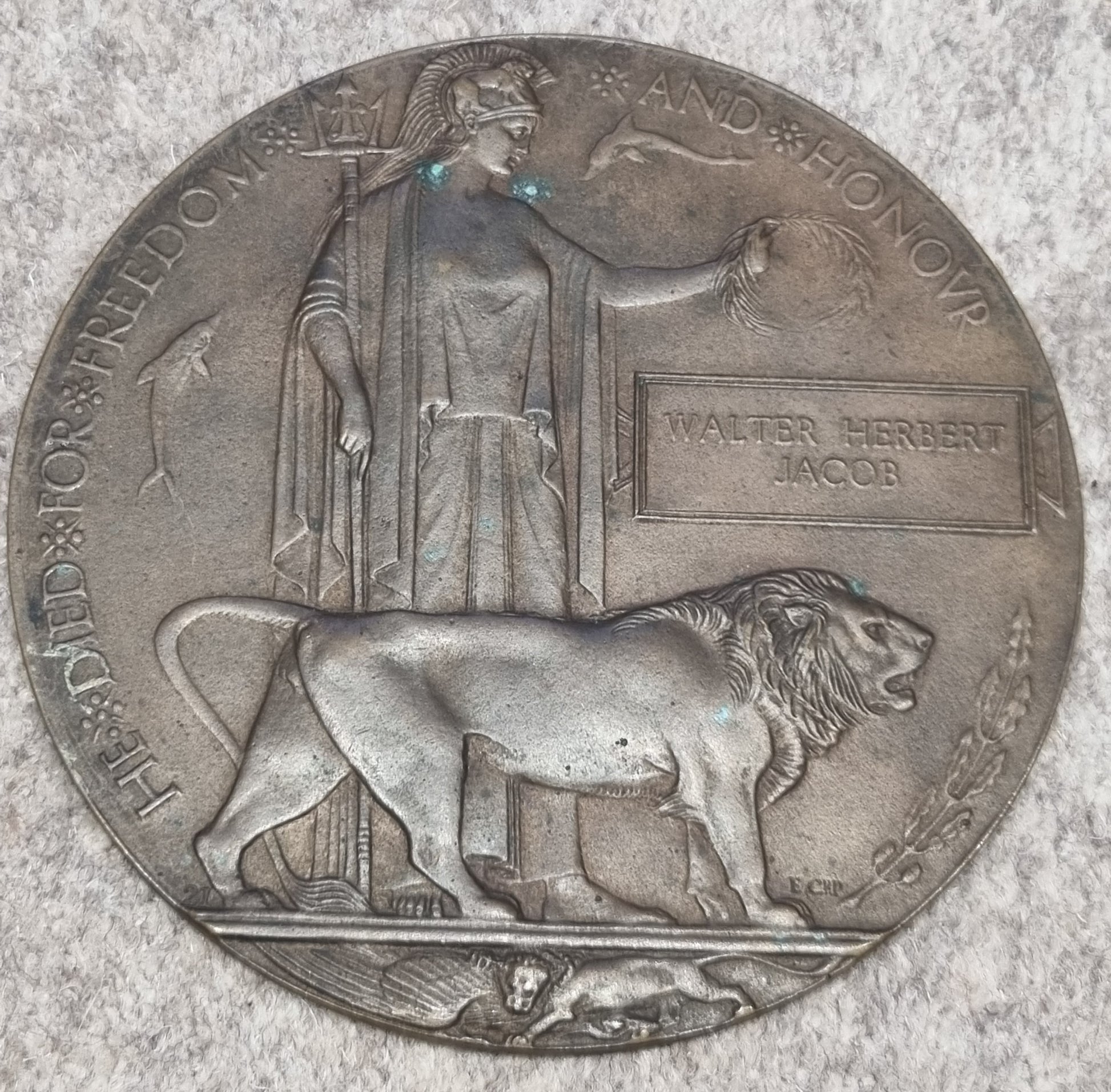 WW1 British Army Death Plaque WALTER HERBERT JACOB - the 2nd Casualty of the entire Middlesex Regt 1914