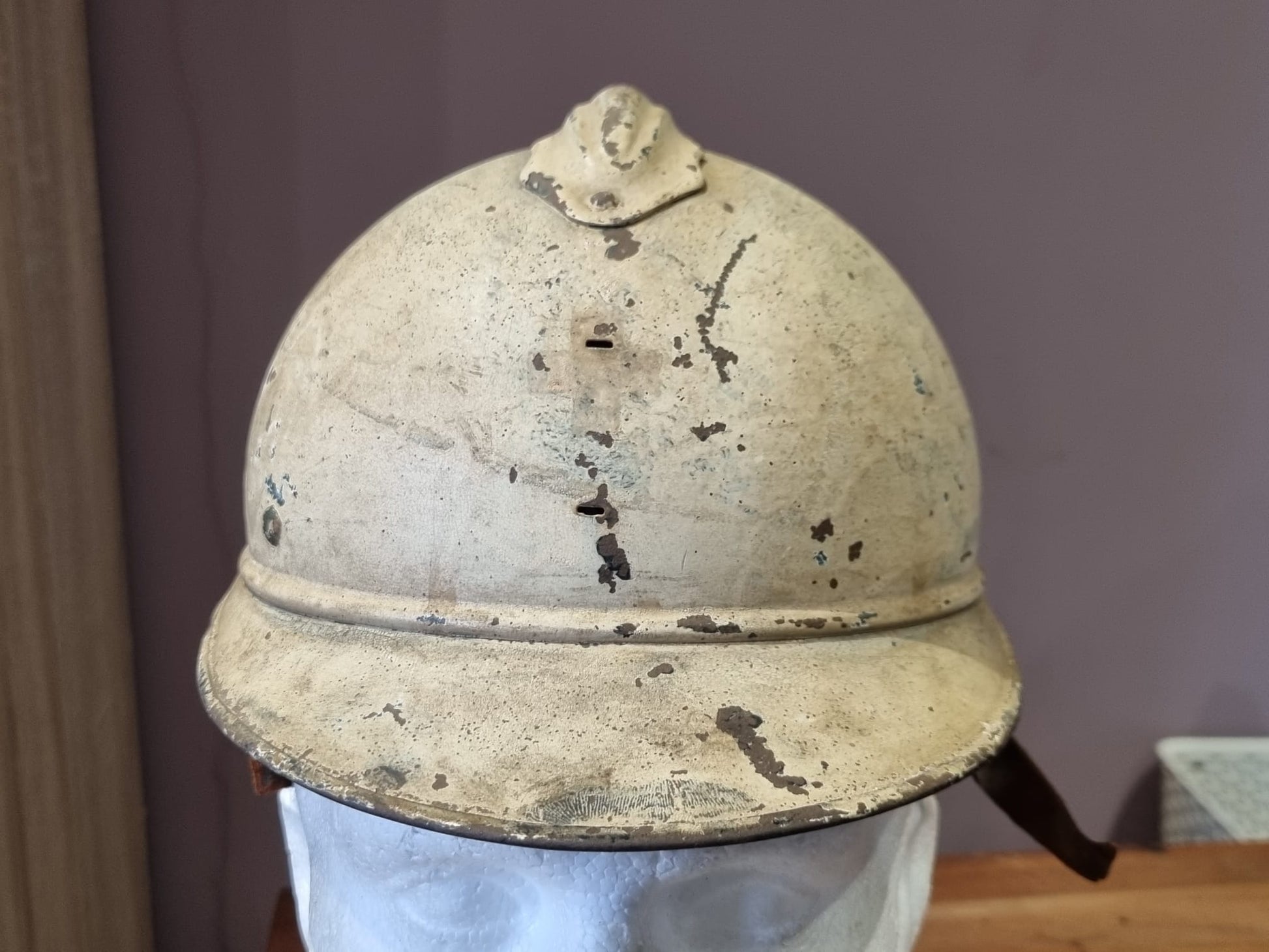 A fantastic WW1 French Red Cross medic’s M15 ‘Adrian’ Helmet, possibly for the Red Cross.
