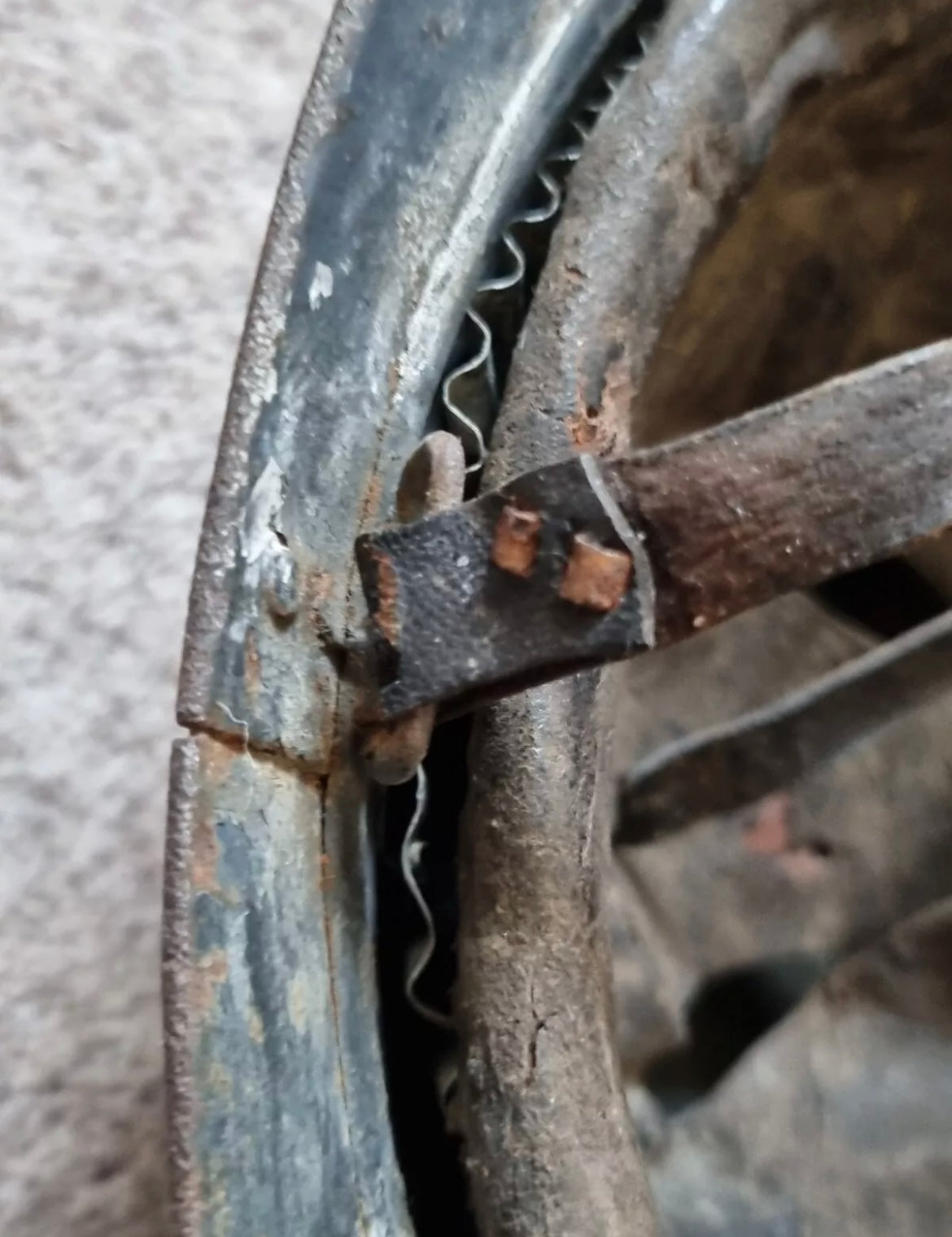 There is also an interestingly shaped dent on the top- could be war damage, maybe even a bayonet strike. But you never know with these helmets, could equally be wear from its over 100 year history.
