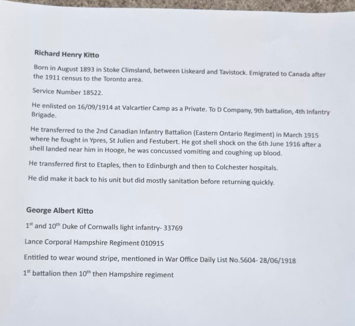 SOLD! WW1 Medal Grouping to Cornish Brothers, Richard and George Kitto- Canadian Expeditionary Force and Duke of Cornwall’s Light Infantry