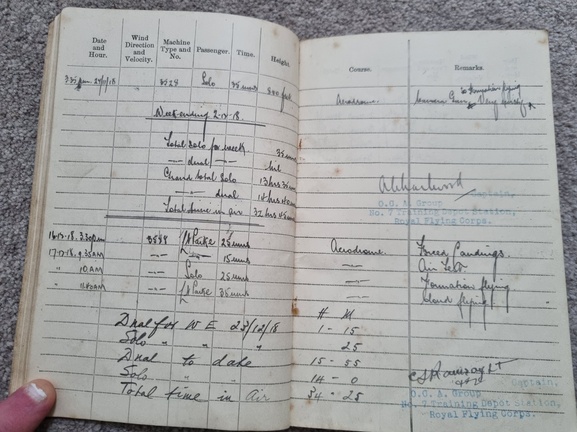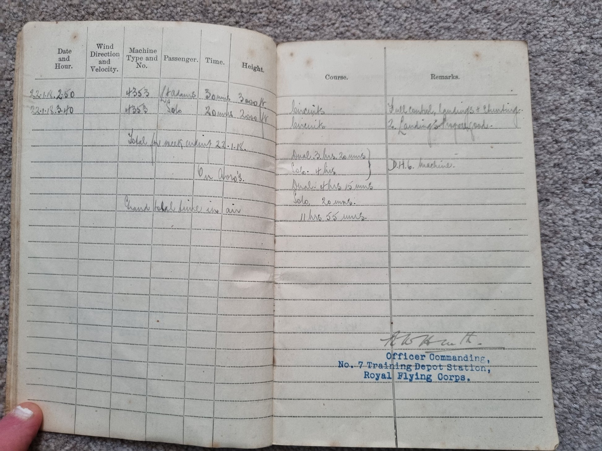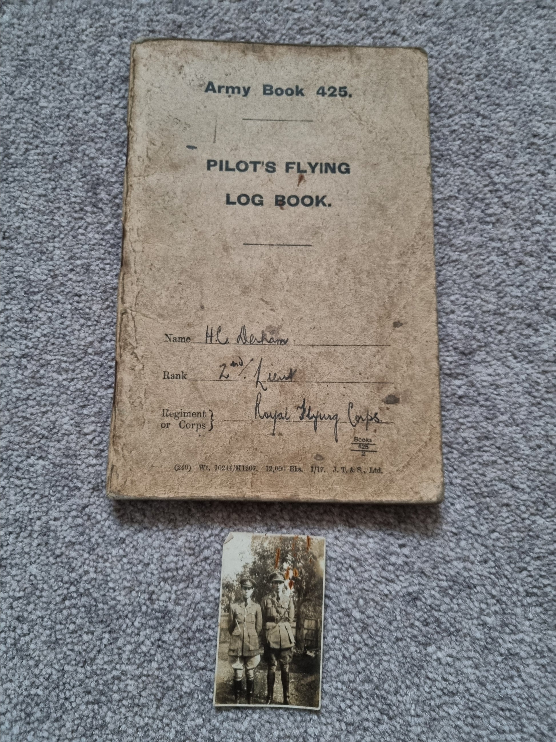 A lovely WW1 RFC Flying Log Book Photo & RFC Papers - 2nd Lieut H C DERHAM