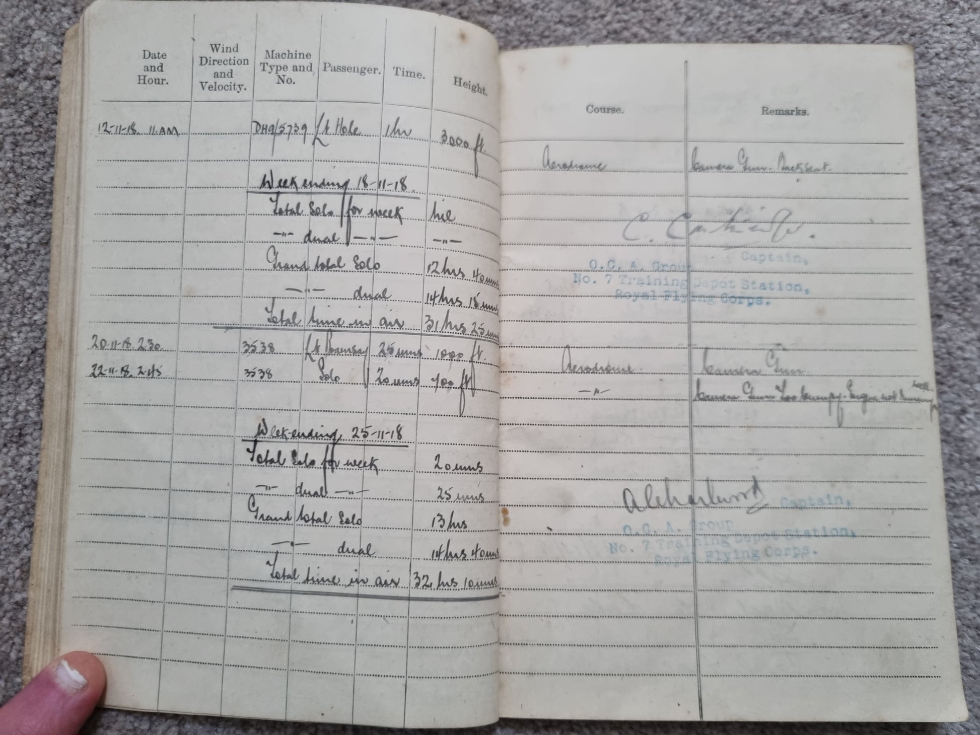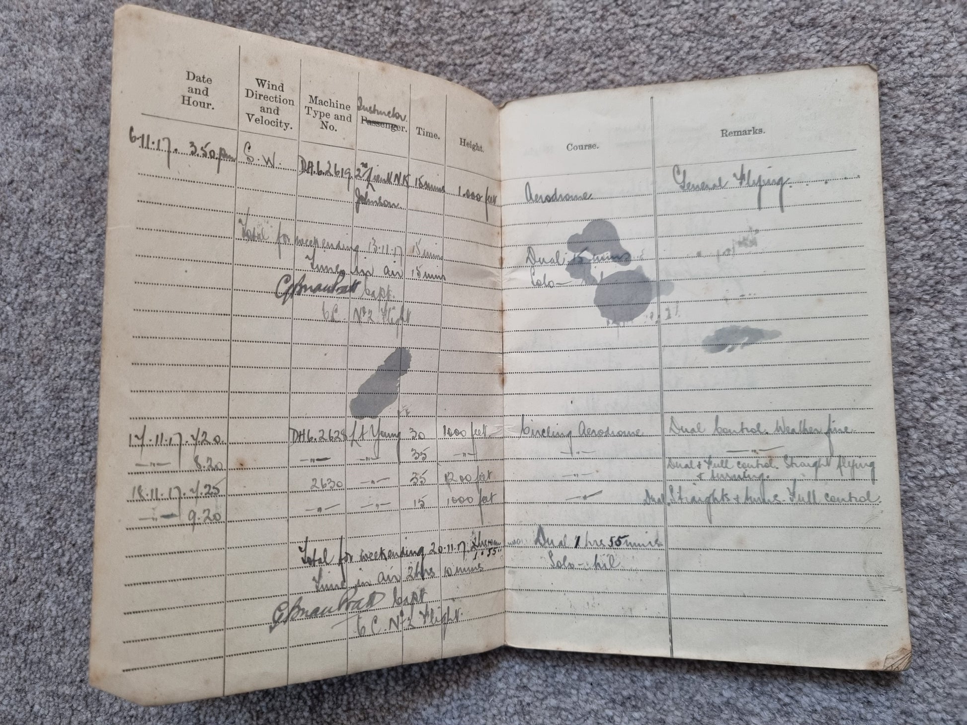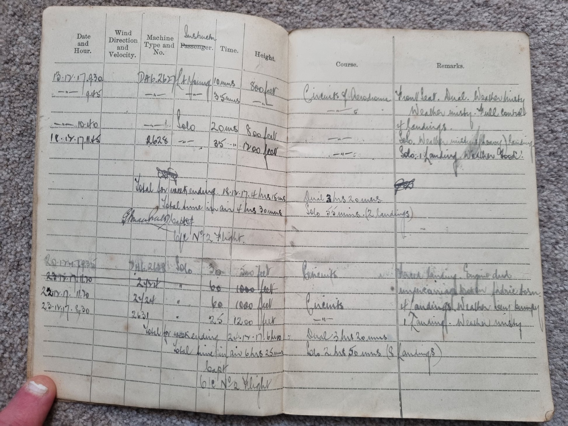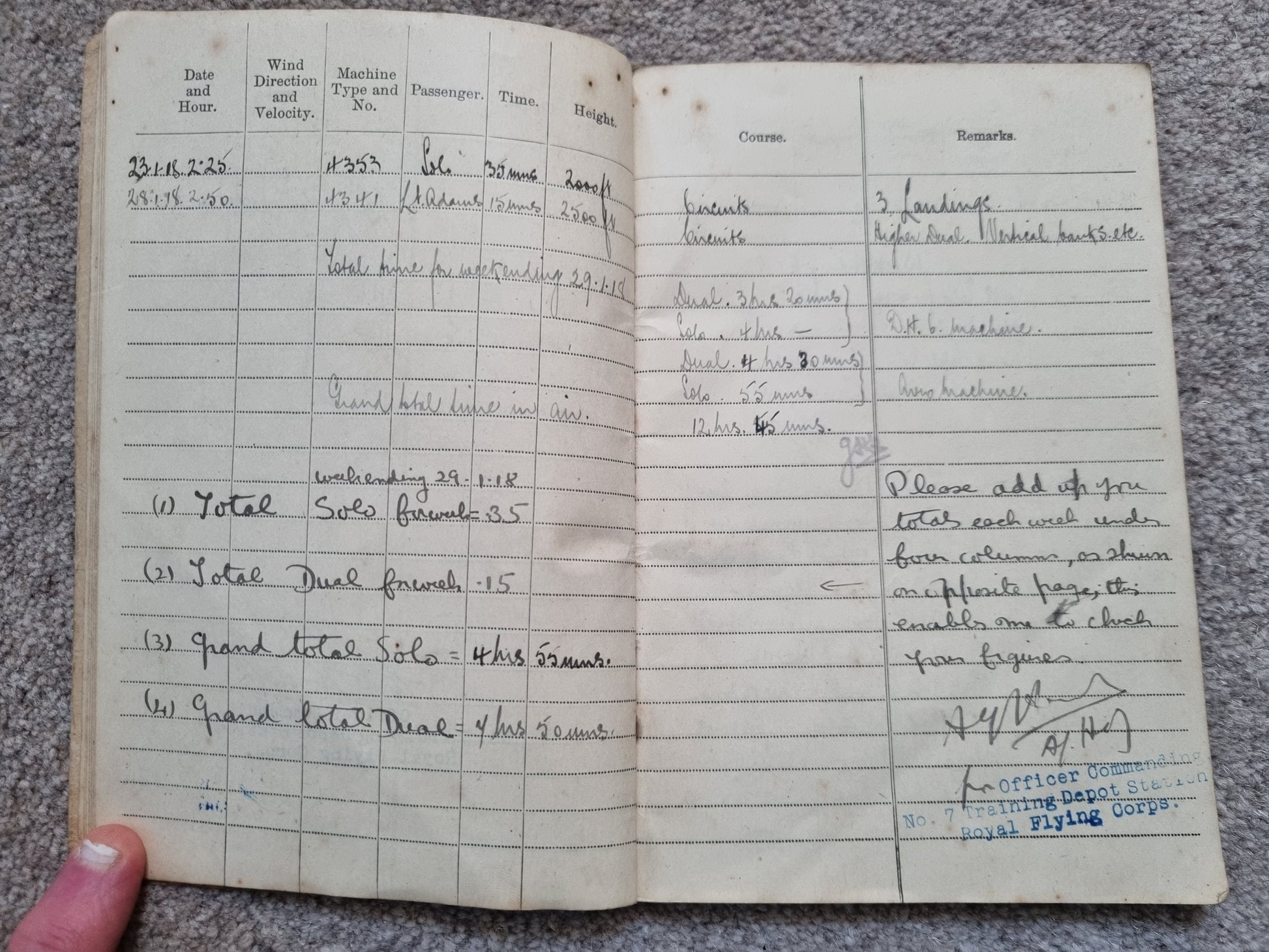 A lovely WW1 RFC Flying Log Book Photo & RFC Papers - 2nd Lieut H C DERHAM