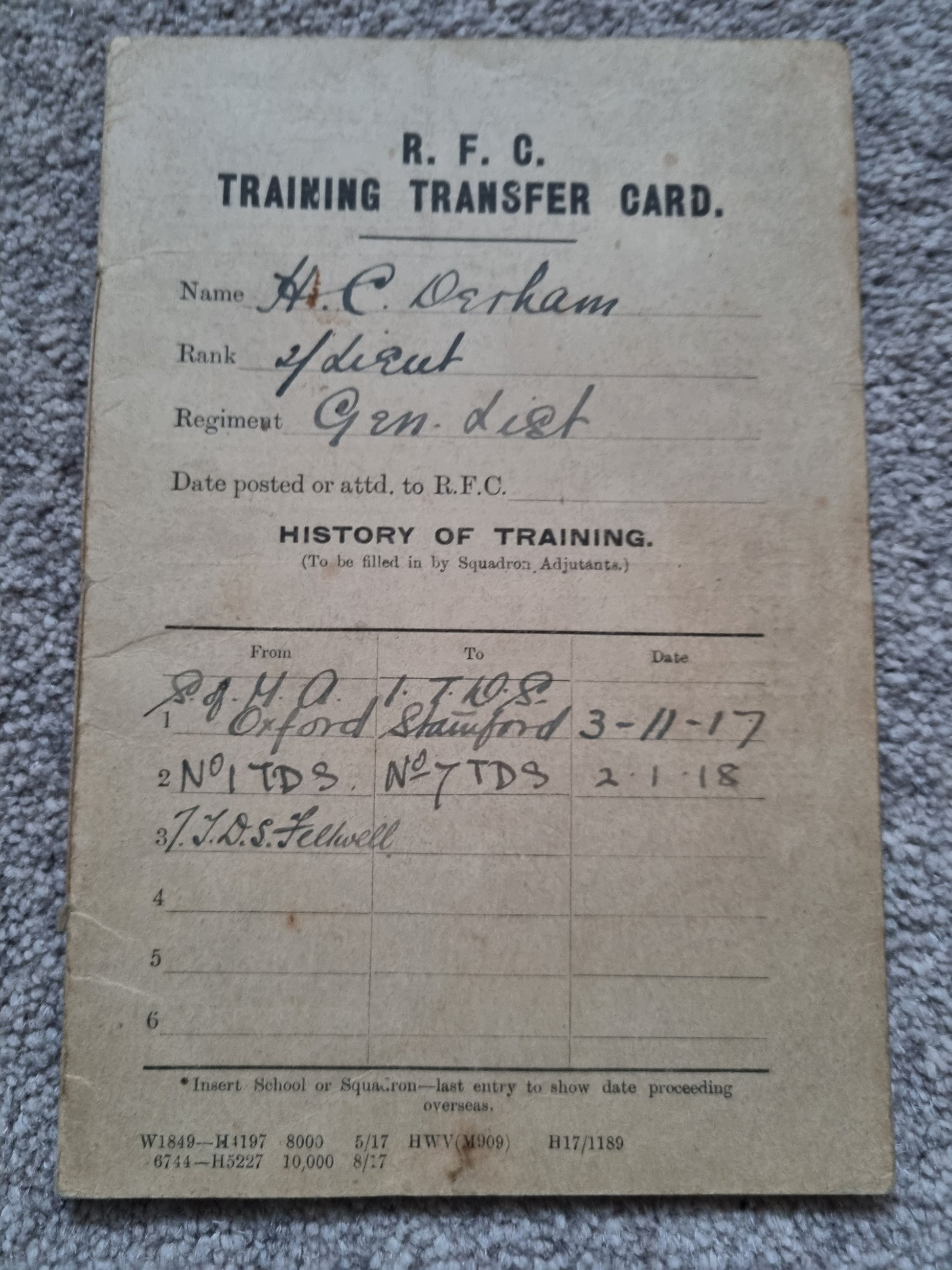 It mainly covers his training at No. 7 Training Depot Station at Fetwell which included a 6 week air Gunner course with Lewis and Vickers machine guns. He was recommended for a scout Squadron.