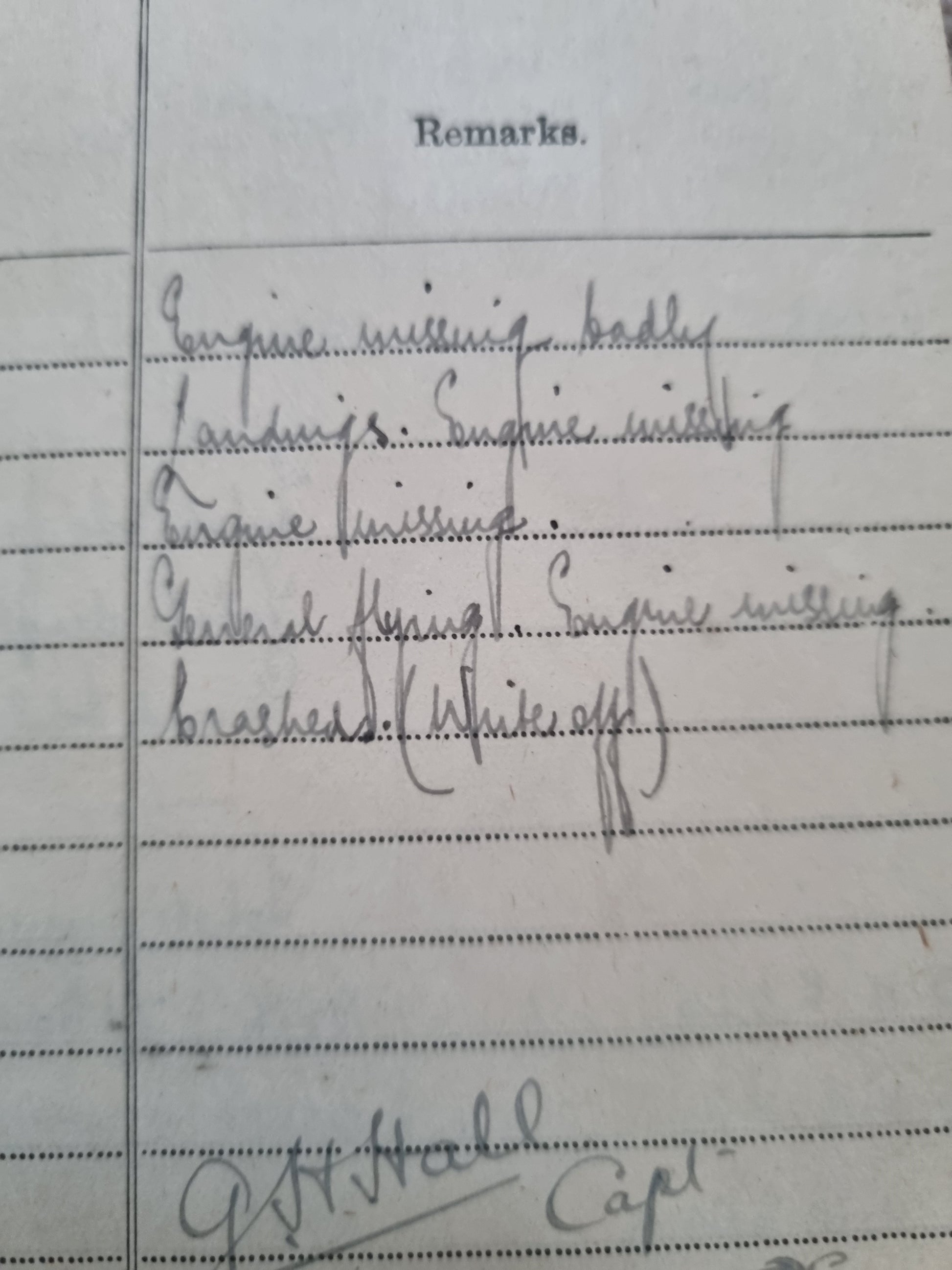 On the 9th March 1918 there is an entry for him crashing aircraft 4485 and it being a write off