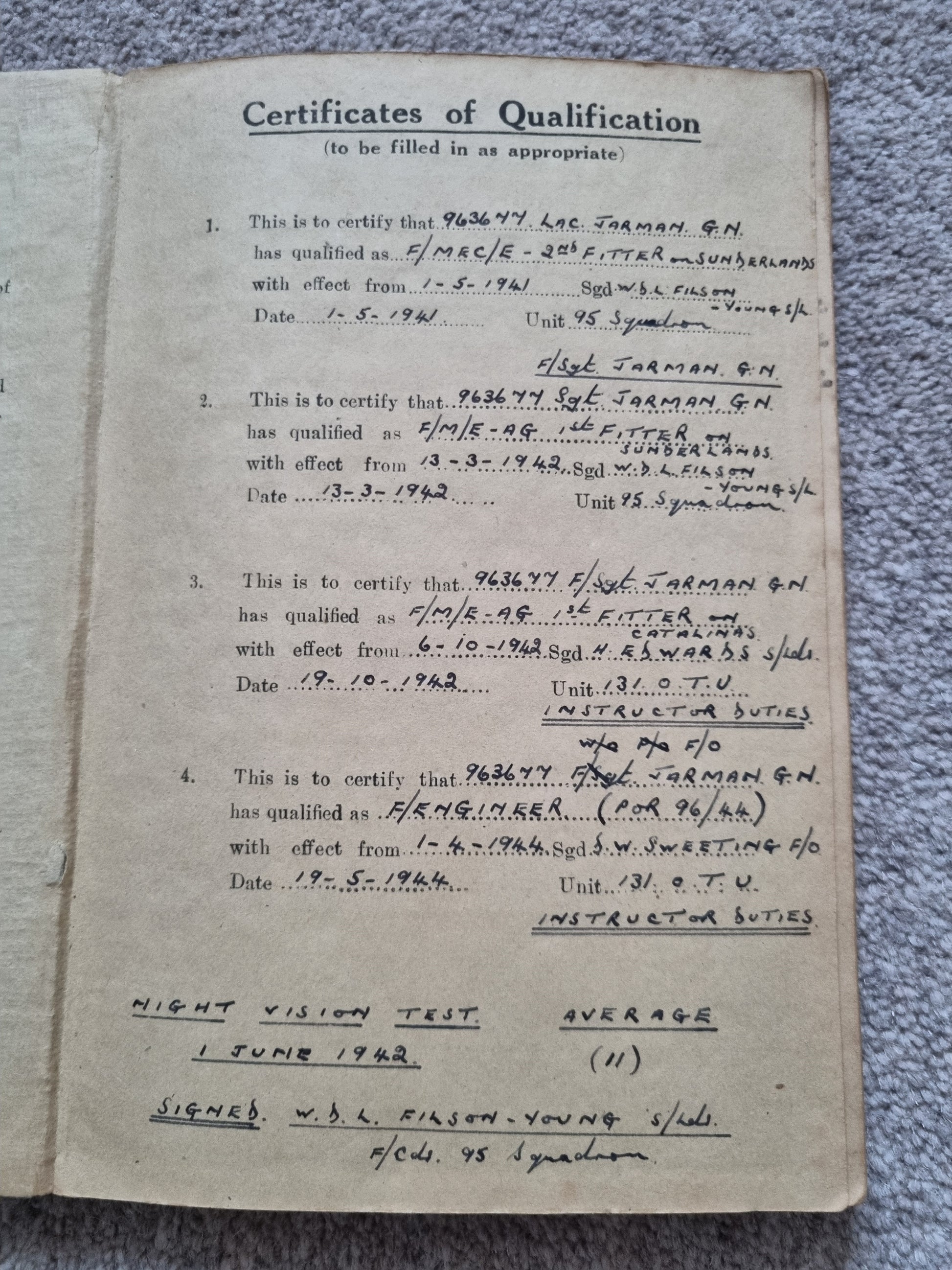 In Oct 1942 he was posted to 131 Operations Training Unit as an instructor & fitter, flying Catalinas.
