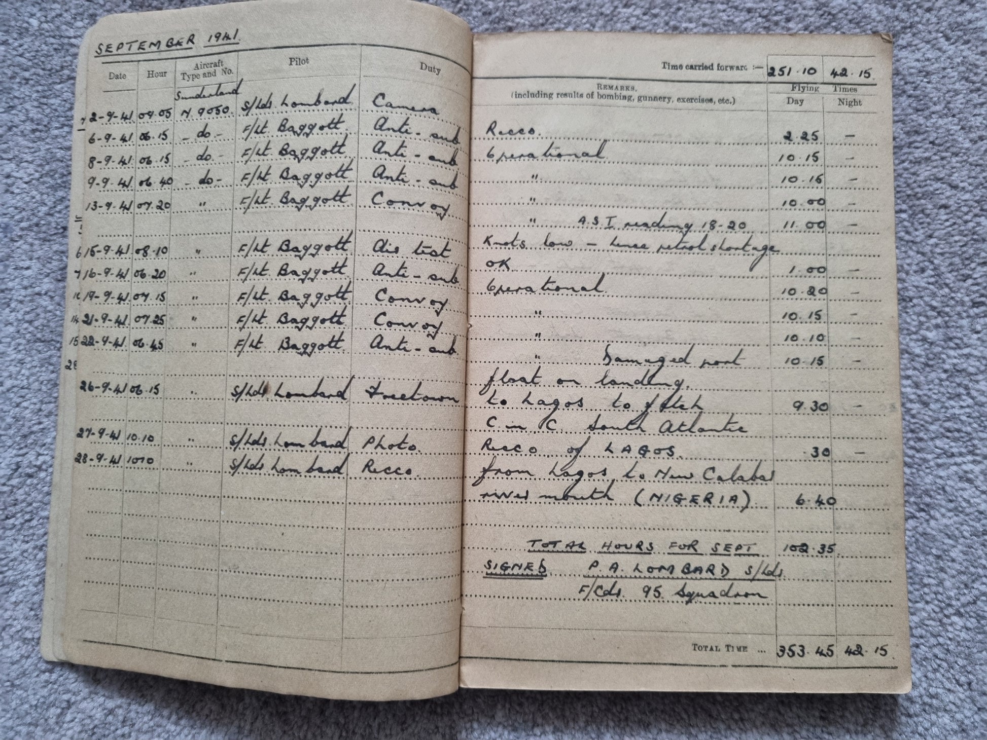 On 17/12/41 his log reads “Search- operational (also search for Pan-American airways clipper around Monrovia)