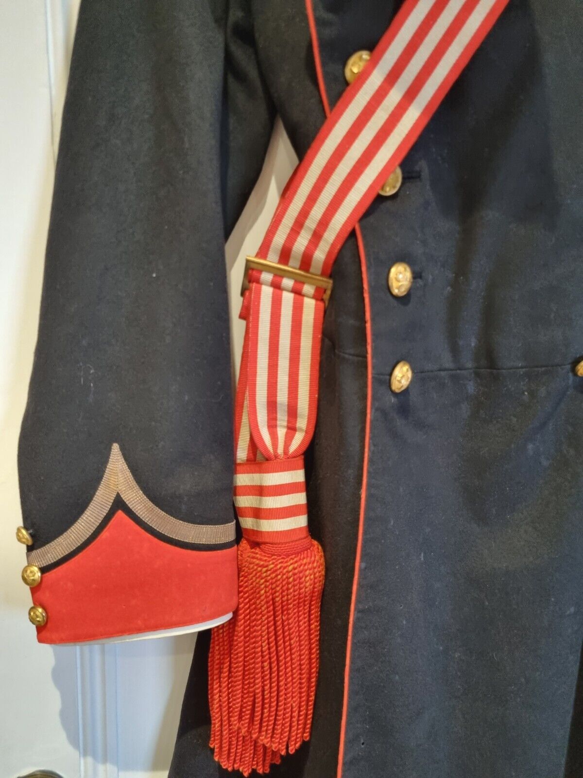 Condition is generally very good, although there are some moth trails on both tunic and trousers, nothing major though. The bullion wire on tunic collar has some fraying but all buttons are present.