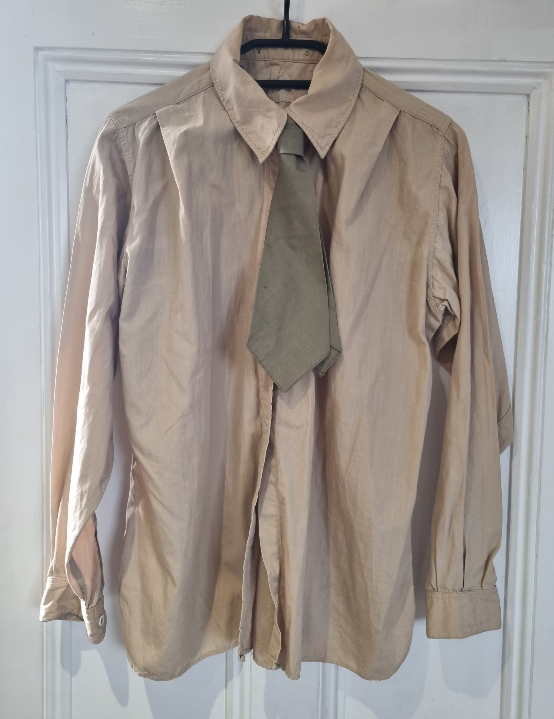 Shirt is marked as size 3, marked with a broad arrow and dated 1942. Approx 38 chest.