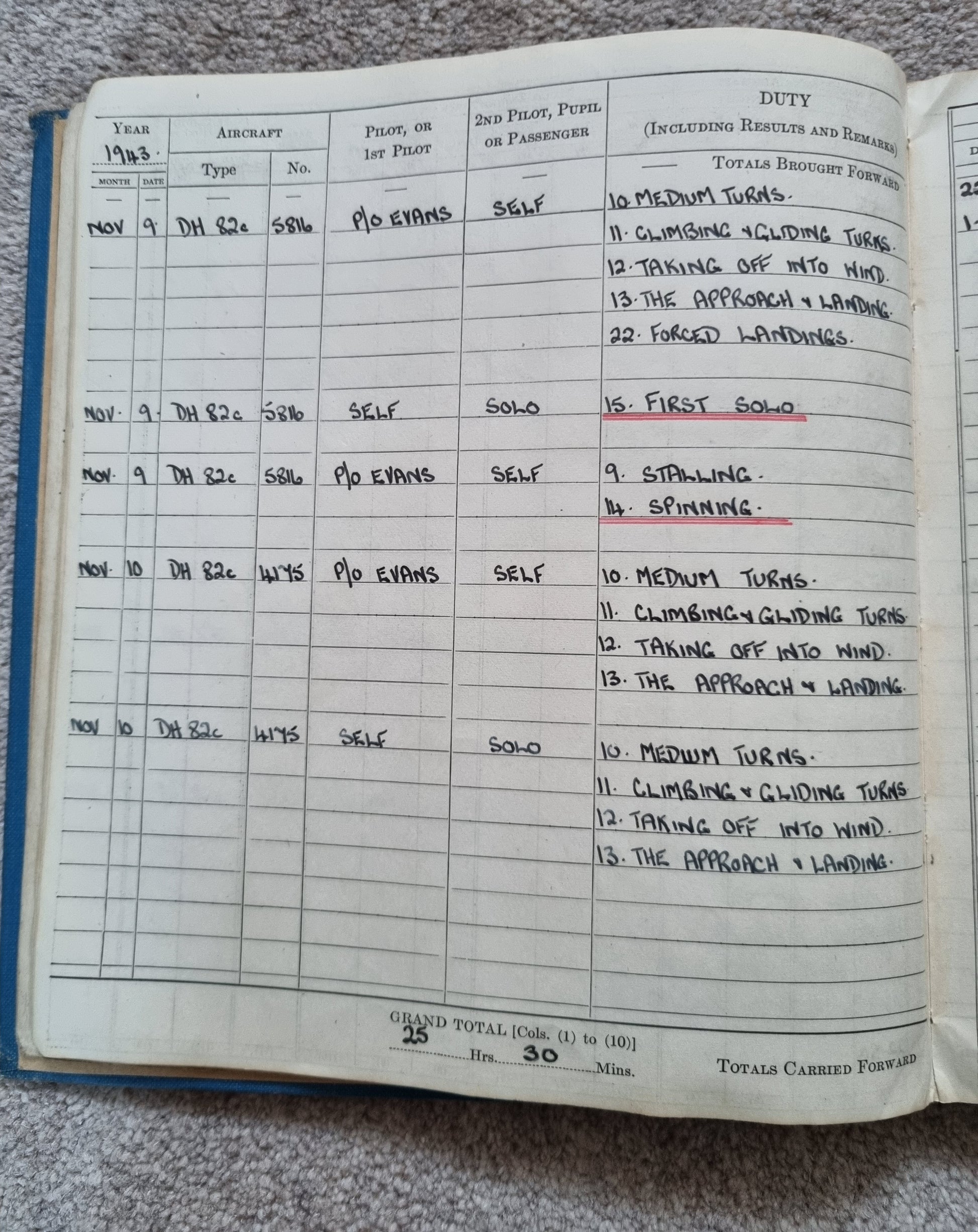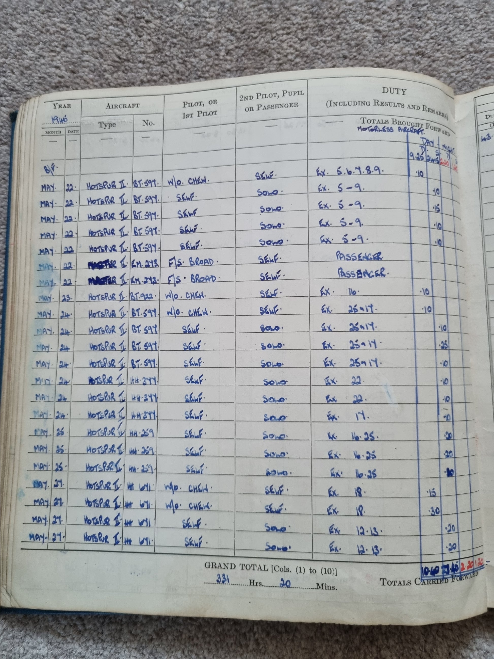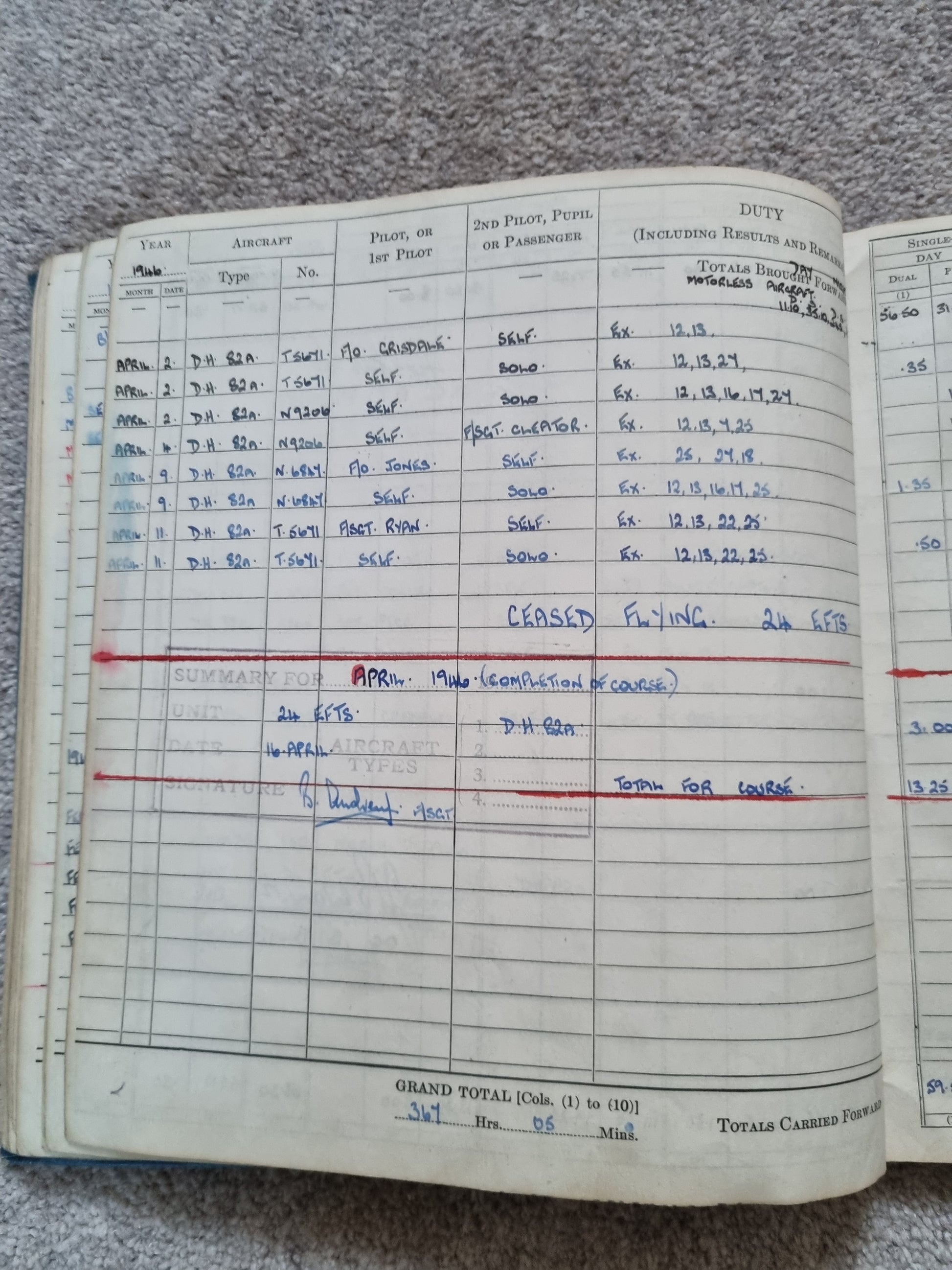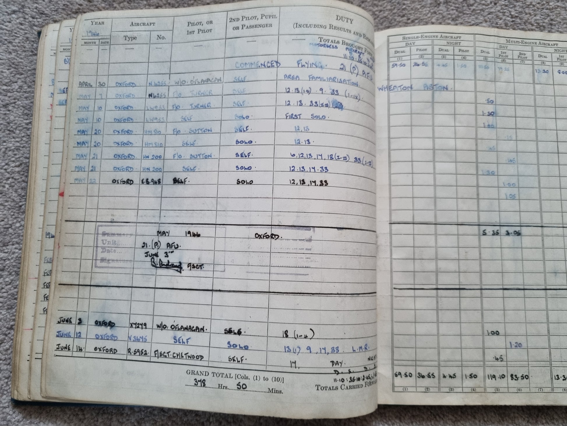 It includes a huge number of flying hours over the 4 years, including flying gliders from Nov 1944 - June 1945. His totals were 564 hours, 50 mins.