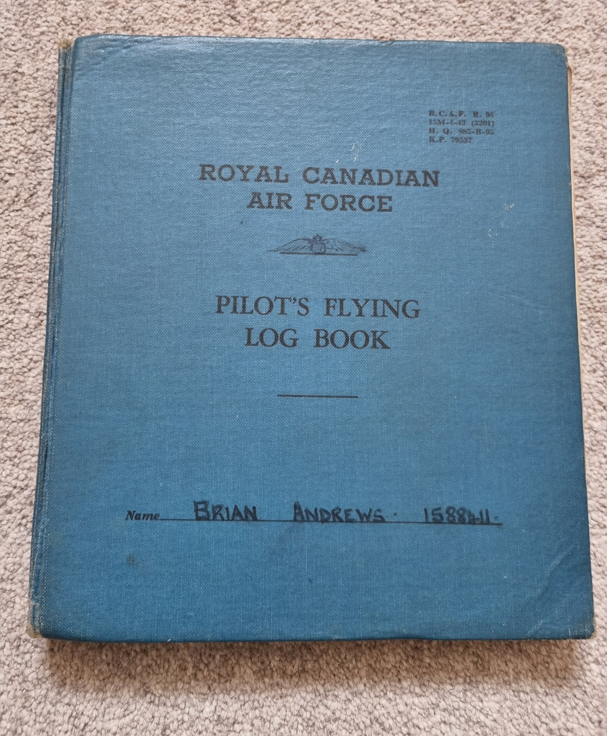An incredibly rare WW2 RCAF Flying Log Book for Flt Sgt BRIAN ANDREWS a pilot in the GLIDER PILOT REGT who flew on Operation VARSITY, the single biggest airborne operation of WW2 in March 1945.