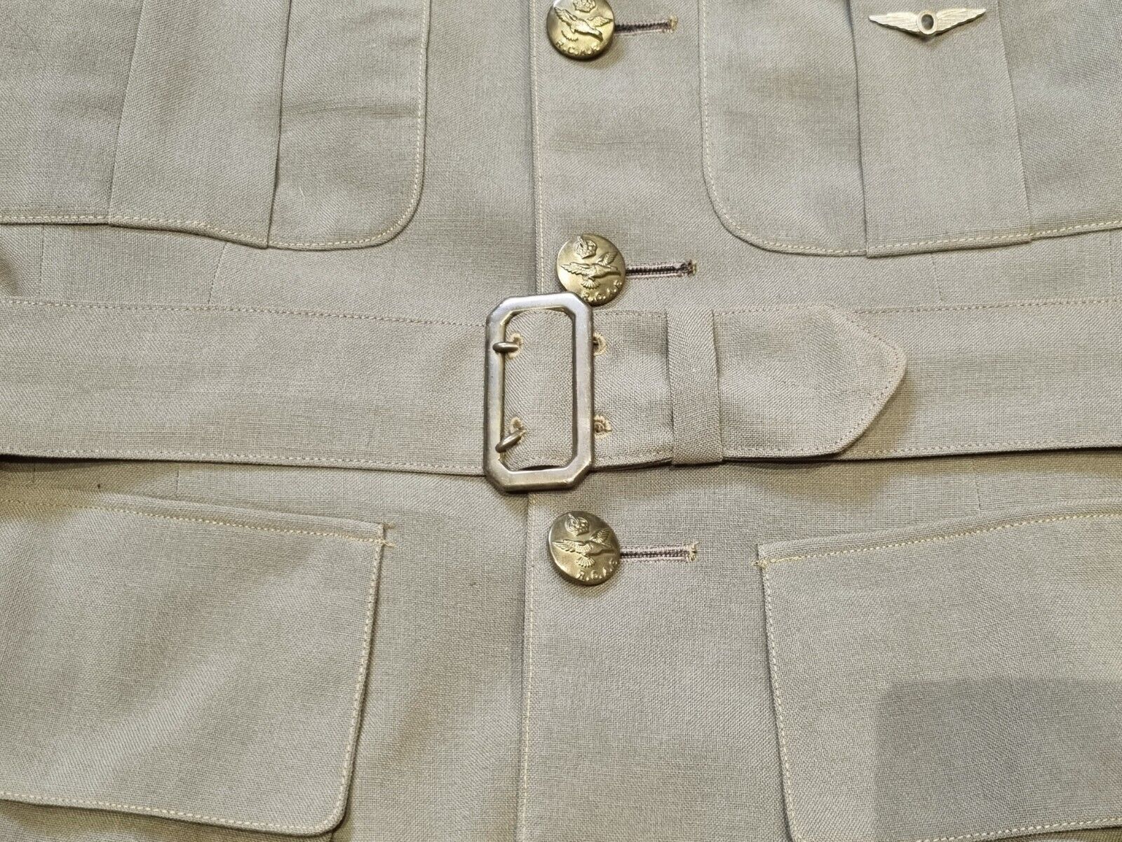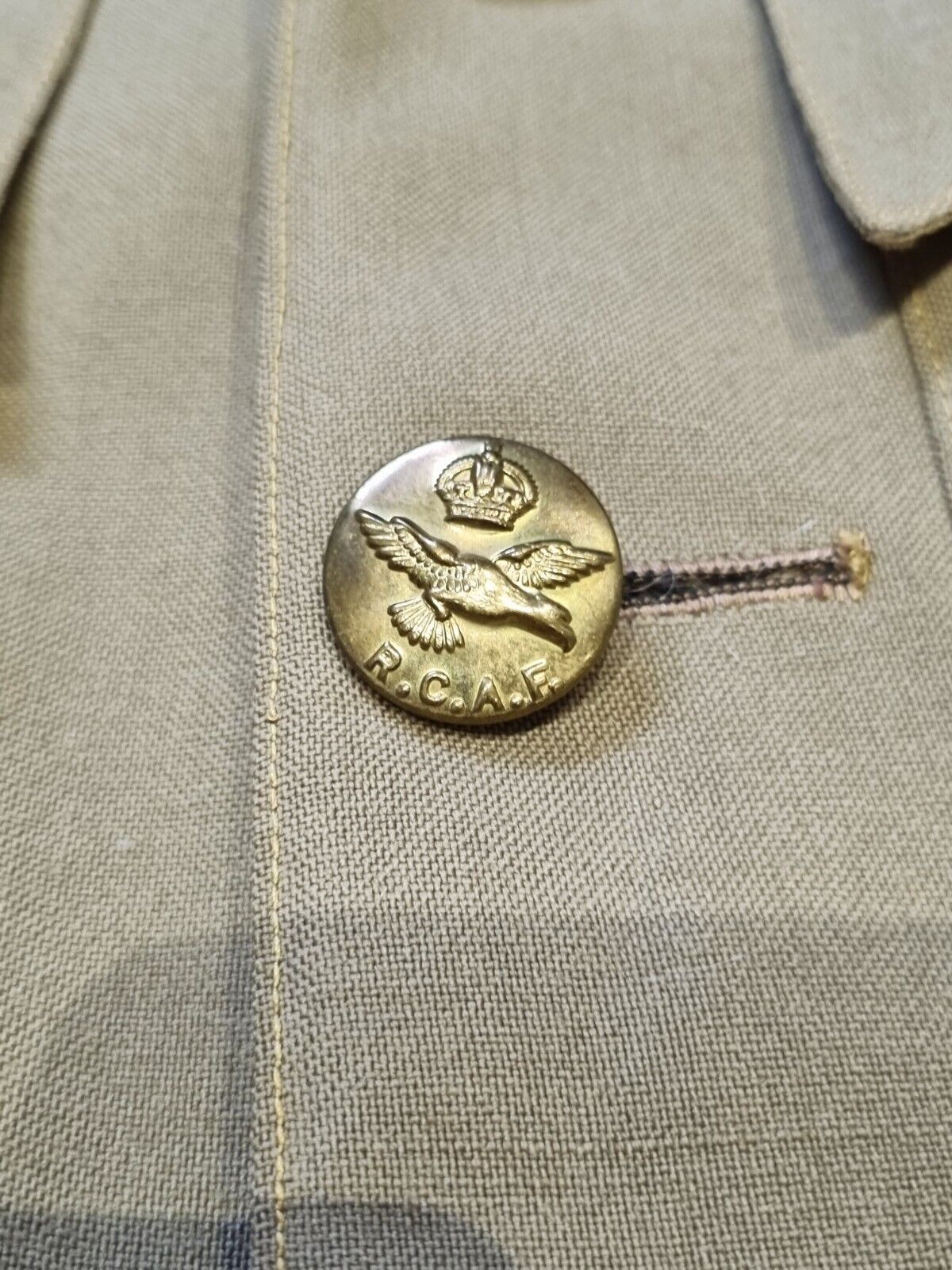 A pristine condition WW2 Royal Canadian Air Force navigator's Canadian summer tunic, with operations mission Badge. This is a beautiful and rare jacket in fantastic condition. Likely made from a cotton/linen mix.