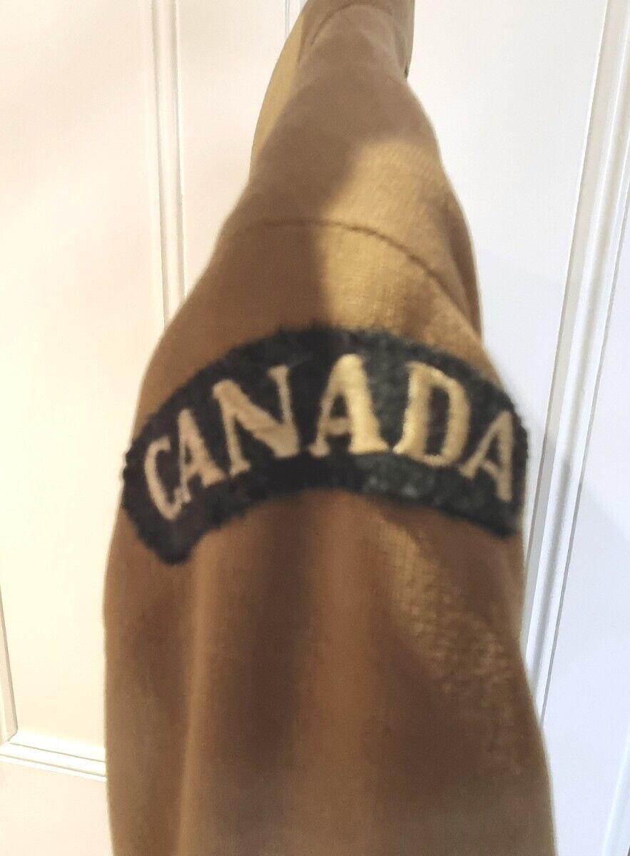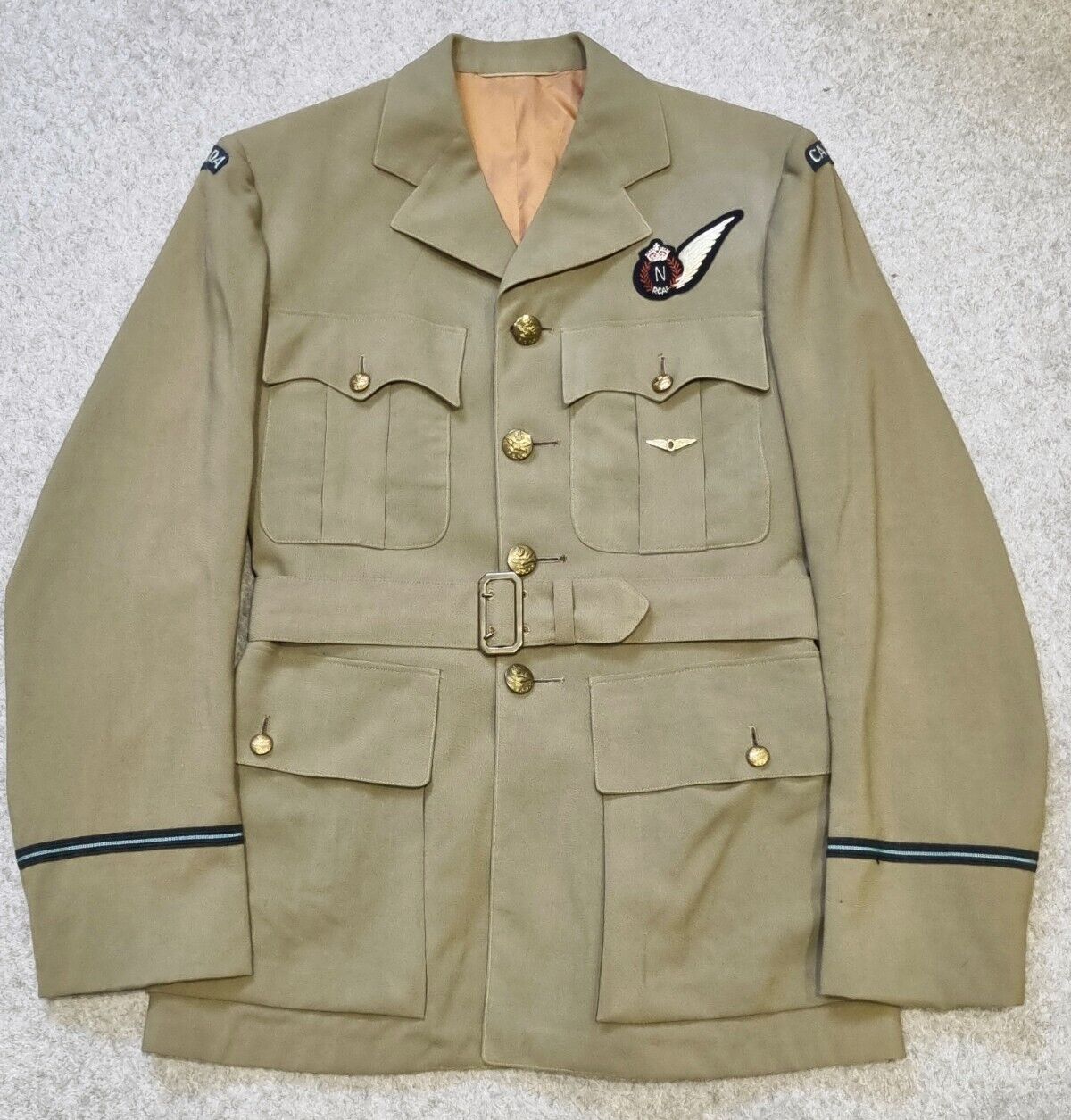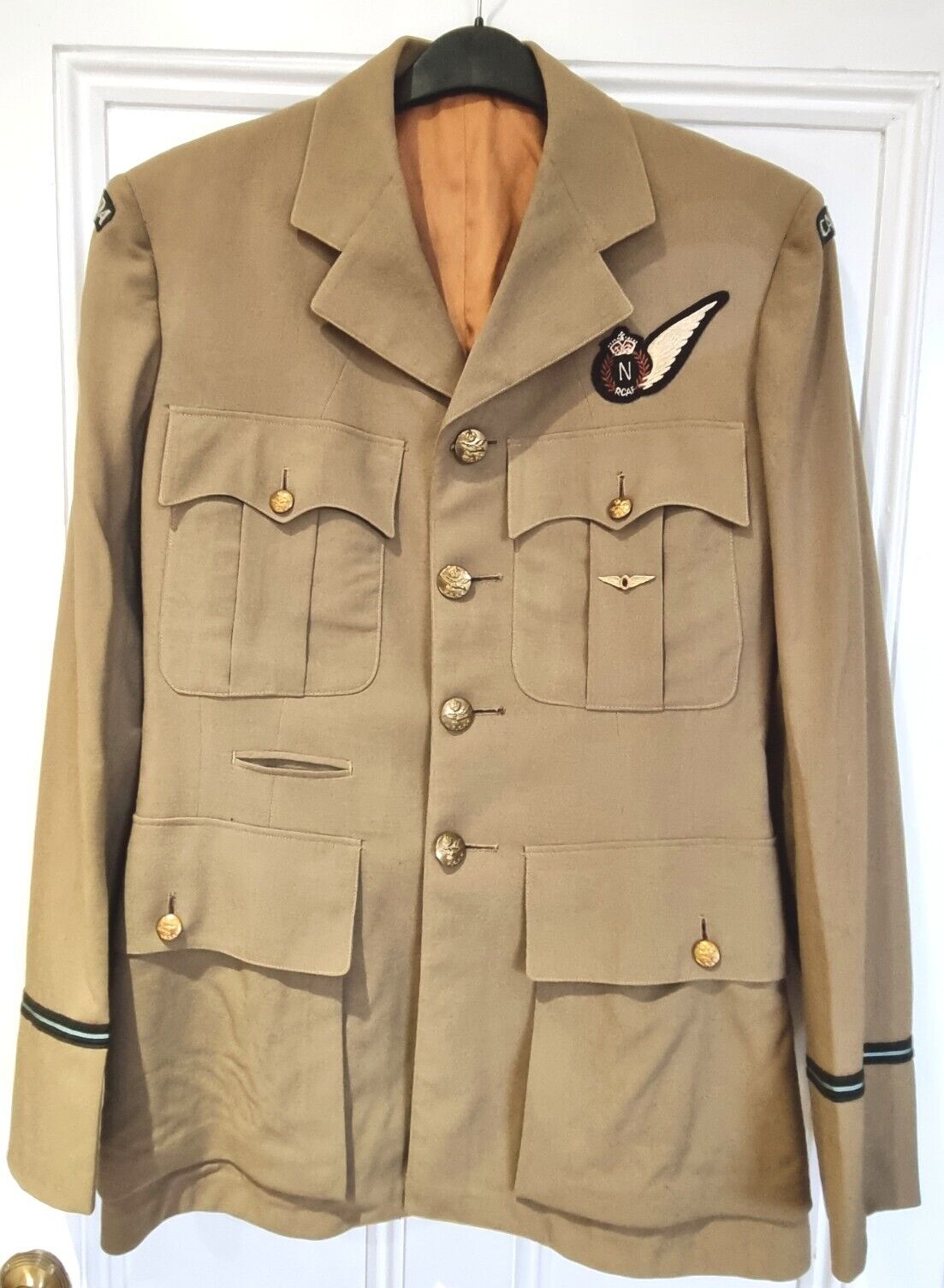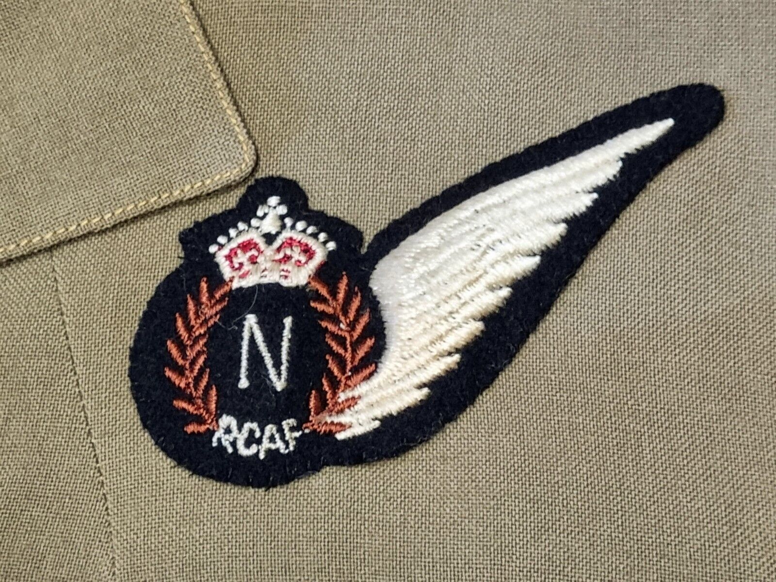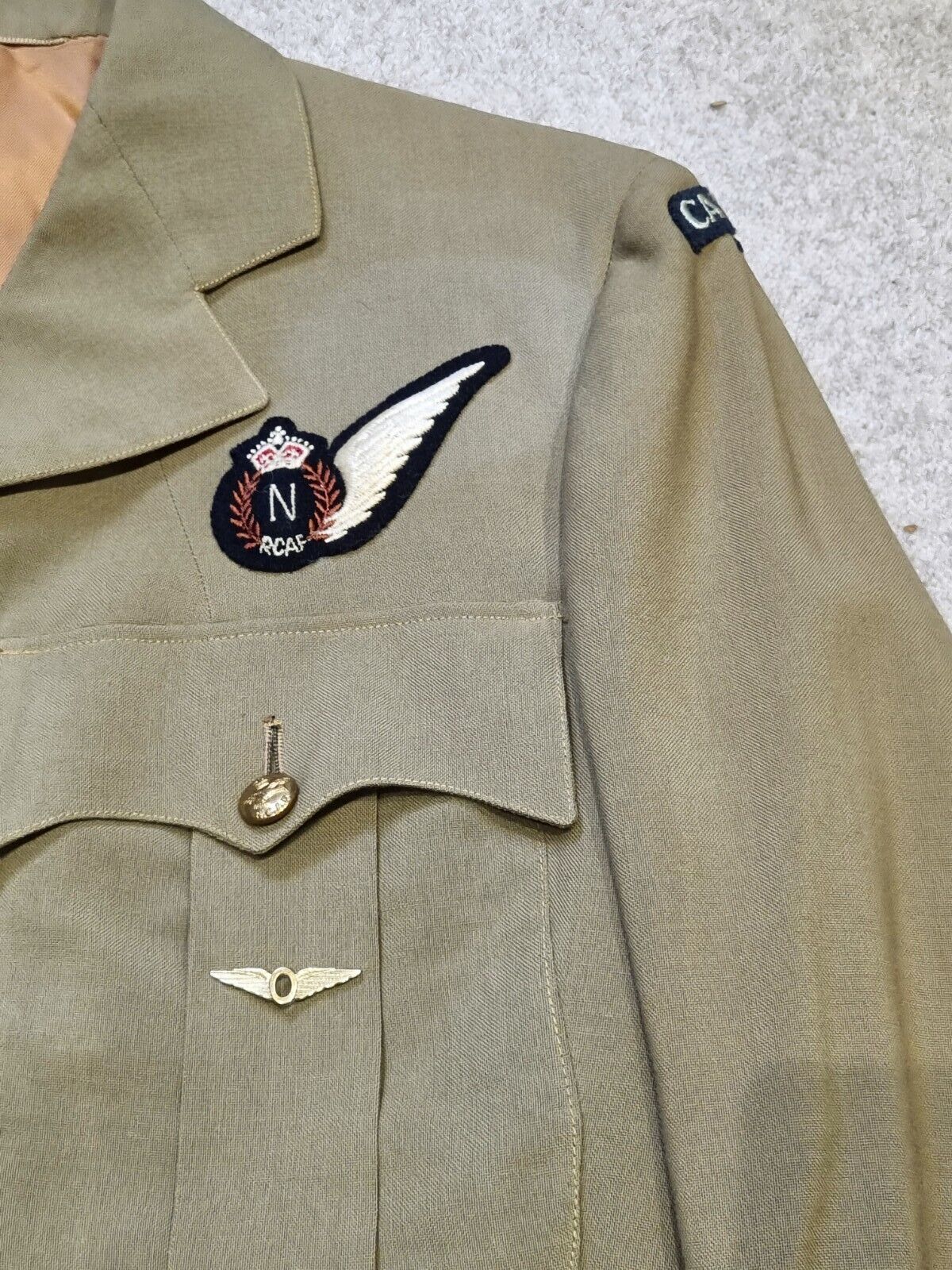 All patches and badges are present, including the Canada fabric embroidered shoulder titles and embroidered Navigator badge. All RCAF buttons and the belt are also present.