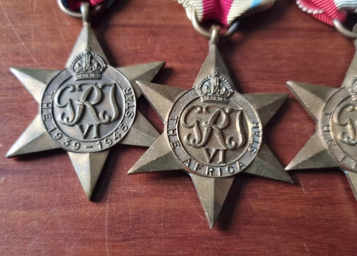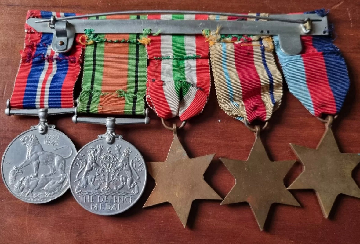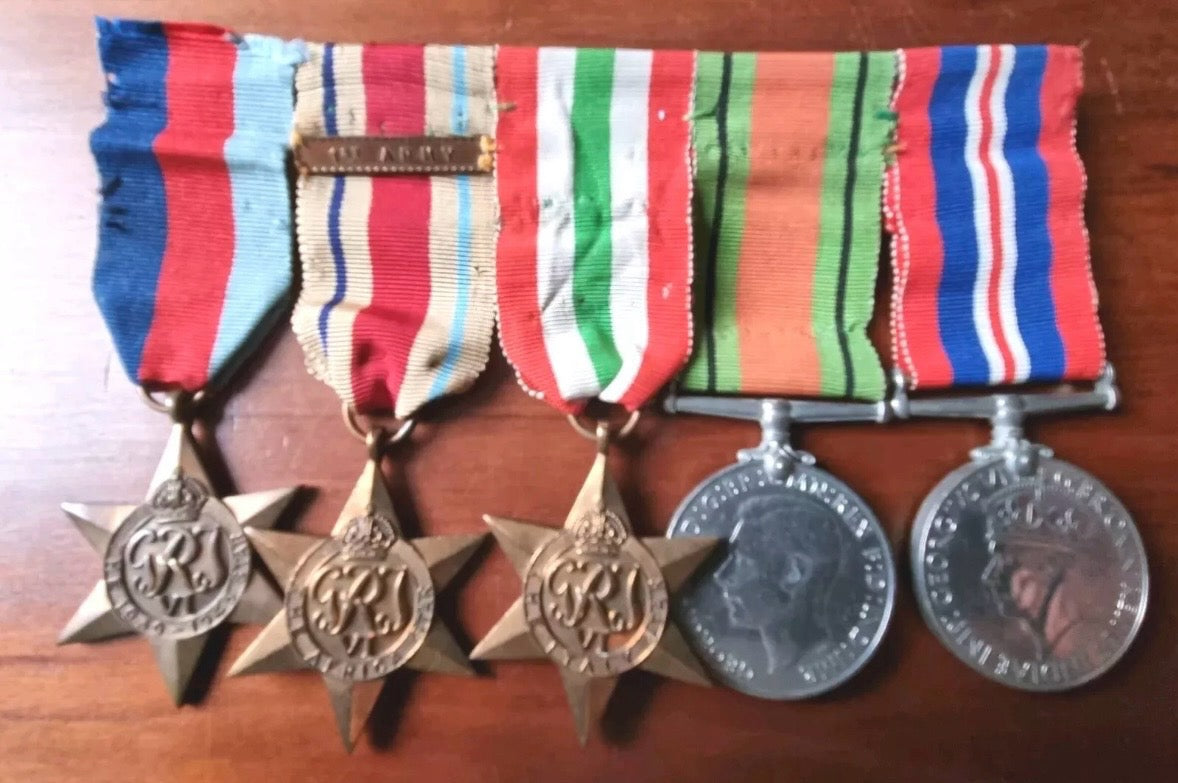 - 5 mounted medals : 39-45 Star, Africa Star with 1st Army clasp, Italy Star, Defence Medal, 39-45 War Medal