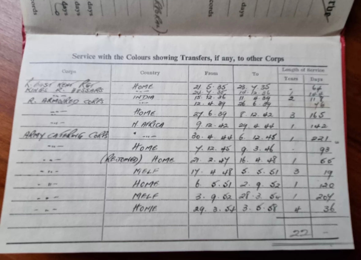 - Royal Armoured Corps 1936-44 including in India between 1936-39 and North Africa between 1942-4